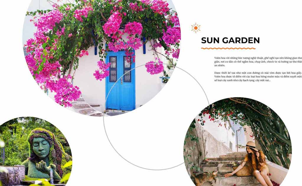- Sun Garden với con đường hoa giấy bắt mắt, cư dân có thể checkin, ngắm hoa, dạo bộ với sự gần gũi nhất định cùng thiên nhiên.